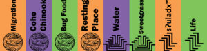 On Sunday November 7th we held a public Eco Arts Celebration in Fremont along the Burke Gilman Trail. Funded through the Seattle Department of Neighborhoods, the event featured art highlighting and interpreting the critical passage of salmon through the Fremont cut, and the recently-installed floating wetlands that are meant to support baby salmon on their migration journey. The University of Washington’s Green Futures Lab has designed, constructed and installed the floating wetlands at the Fremont Bridge and will be researching their effectiveness in replacing lost wetland habitat for migrating fish along urban shorelines, with support from the King County Waterworks program.